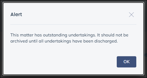 Until the undertaking is discharged you won’t be able to archive the linked matter.