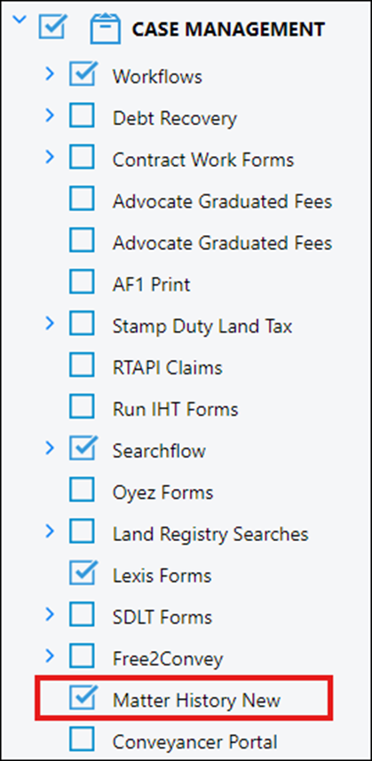 In version 1.3 if the Matter History (New) box was unchecked in the access template, then it did not matter as the user could navigate there by clicking the Case Management tab.