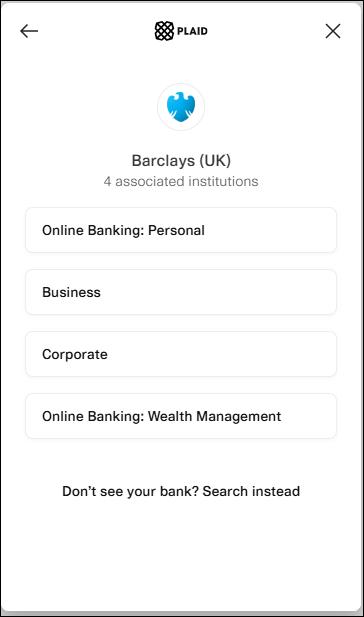 Where banks show multiple available you will see a further screen listing this account types