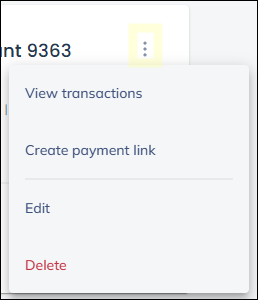 Click the bank name to view the transactions, the vertical ellipsis will show options to view transactions, Create payment link, Edit the account or Delete it.