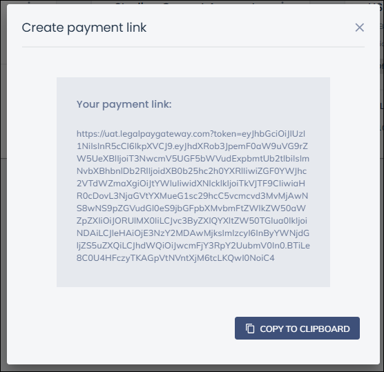 The created link will be shown and it can be copied to the clipboard.