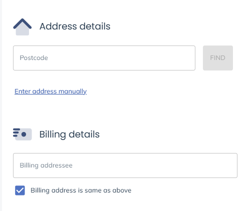 Should both addresses be the same you can, if you wish, tick the ‘Billing address is same as above’ box to copy the Account Address to the Billing Address or vice versa.