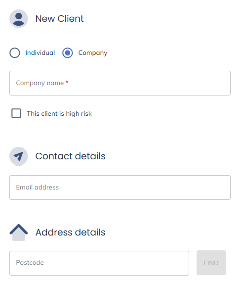 You will then be presented with the client details window where you can start filling out the details for your new client.