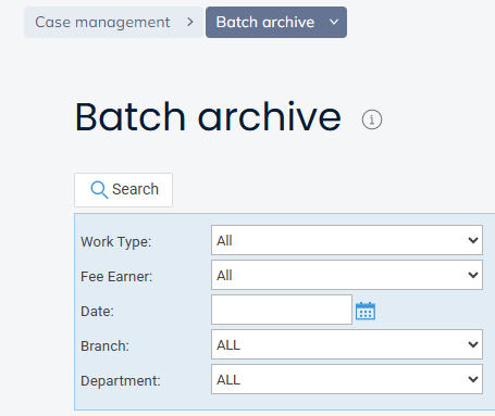 Fee Earner – select a fee earner to check all the matters owned by a particular fee earner which can be archived.