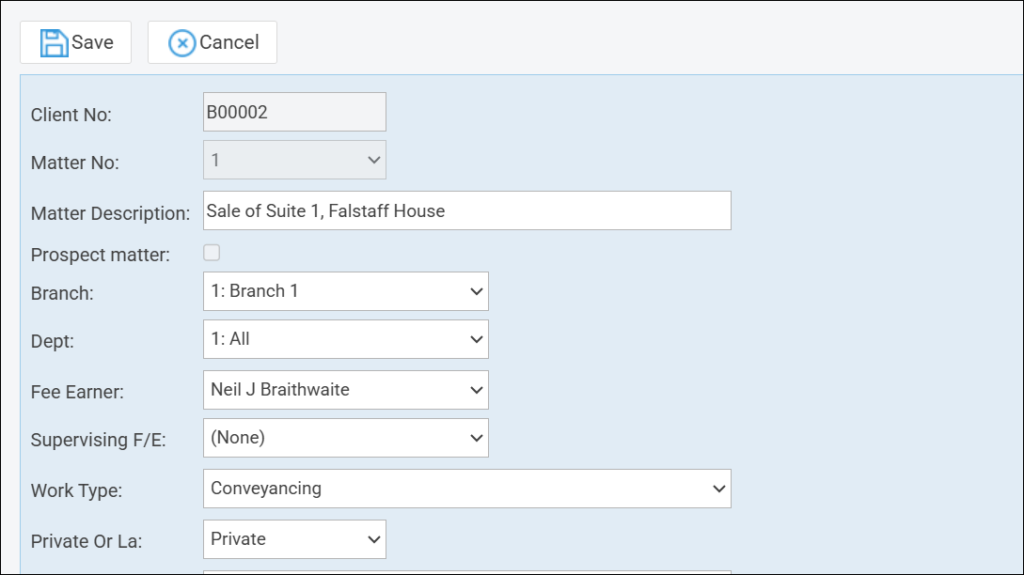 Use the same posting date and reference for all of the required postings. Once you have cleared all the balances on the ledger card, edit the matter, change the branch and save your changes as above.