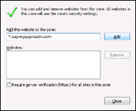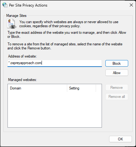 Once again, add *.ospreyapproach.com, [*.]ospreyprod.co.uk and [*.]ospreyprod-la.co.uk into the Address box, clicking Allow for each one.