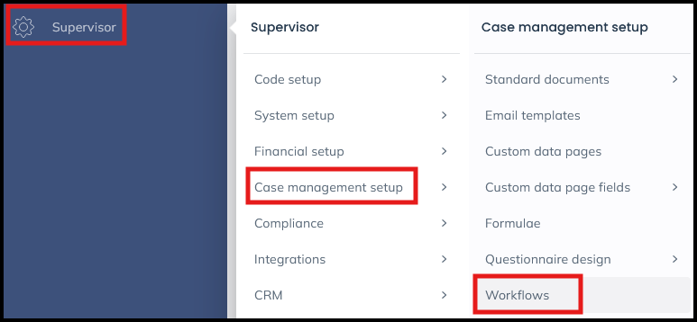 Select Supervisor > Case Management Setup > Workflows