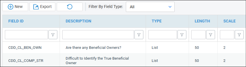 There will be a ‘New’ button available at the top right of the fields table. Click on this.