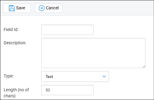 You are now able to enter the new ‘Field ID’ and ‘Description’ to be created. The description will be the name shown against the custom data field. The field ID is shortened text of the description which is used when mapping custom data fields onto your document templates and views.
