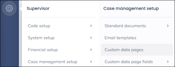 Select ‘Case Management Setup’ under the ‘Supervisor’ area. Then select ‘Custom Data Pages’
