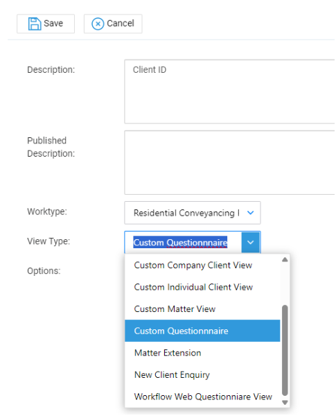 Published Description is only required for New Client Enquiries or Web Workflow Questionnaires.
