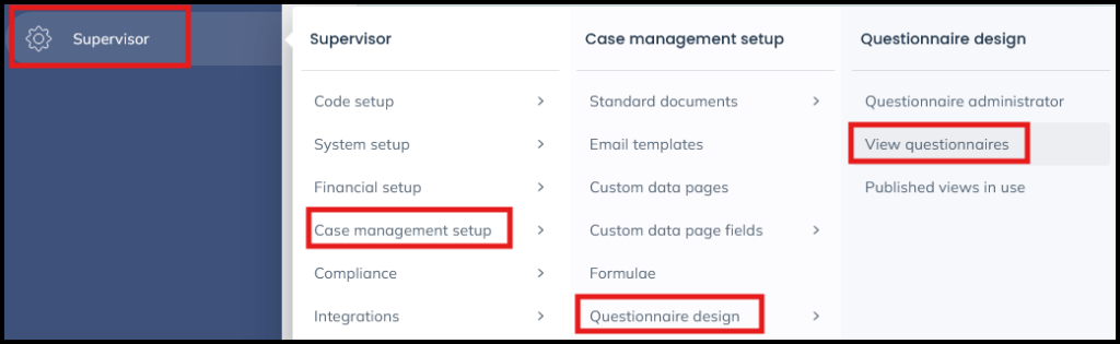 Navigate to Supervisor > Case Management Setup > Questionnaire design > View Questionnaires. Then click on ‘New’.
