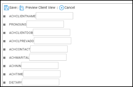 Click Design Client View and a list of fields will be displayed.