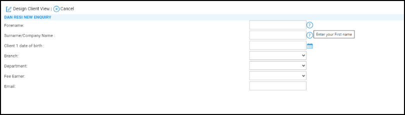 Run will then show your questionnaire for the selected client, allowing you to capture information for your matter.