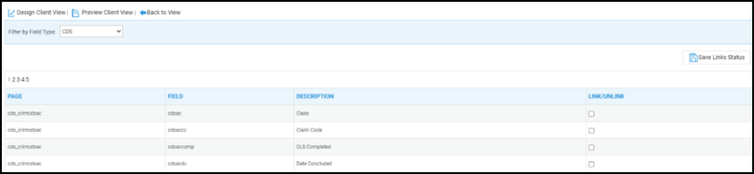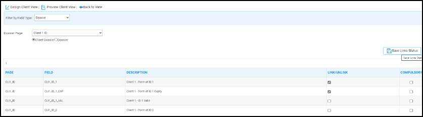 In order to link any fields to your View/Questionnaire, place a tick under the Link/Unlink column of the relevant field, and click Save Link Status.