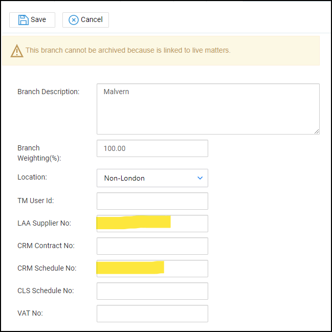 Navigate to Supervisor > System Setup > Branches and ensure that your branches have the LAA Supplier number and CLS Schedule number set: