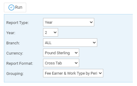 - Work Type or Fee Earner (depending on the grouping)