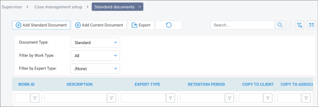 To apply a retention period to an existing document, navigate back to the ‘Supervisor’ area, select ‘Case Management Setup’ and then click on ‘Standard Documents’.
