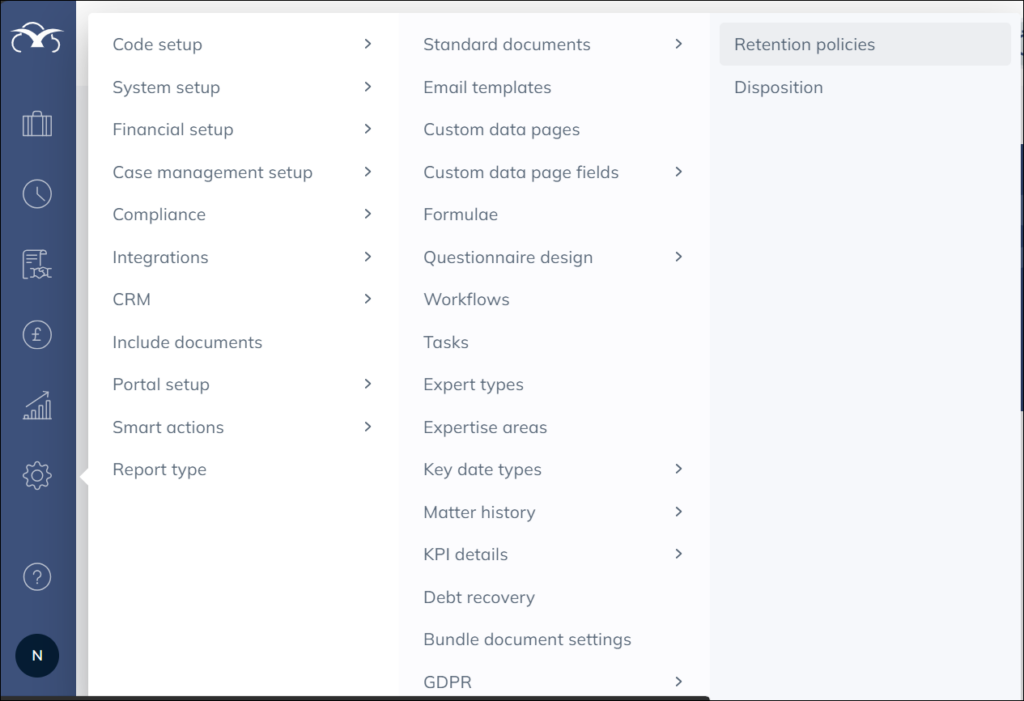 You can add retention periods by selecting ‘Supervisor’ and then going to ‘Case Management Setup’ and selecting ‘GDPR’. Now click on ‘Retention Policies’ to add a retention period to be used against a particular item or document.