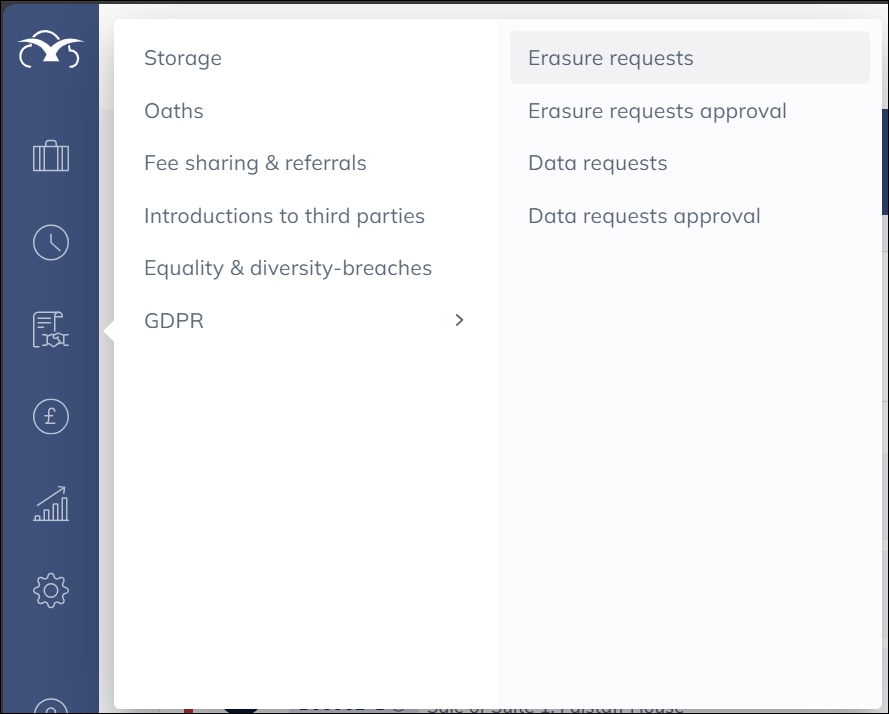 Matter Details – Matter description is replaced with “Erasure rights”. Client and matter numbers remain to preserve accounts integrity.