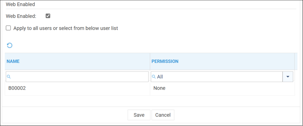Alternately, you can click ‘None’ next to a record and select Read/Write to Web Enable for that specific user.