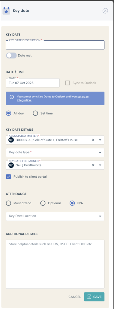 Enter in the relevant details, then check the box next to ‘Publish to client portal’.