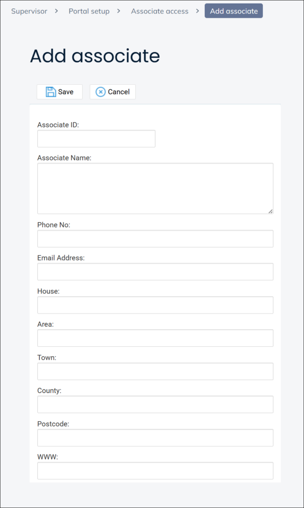 Create an ID – no spaces or special characters and complete the rest of the form. Clicking ‘Save’ will send an automated email to the associate containing the credentials.
