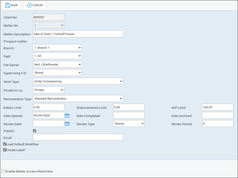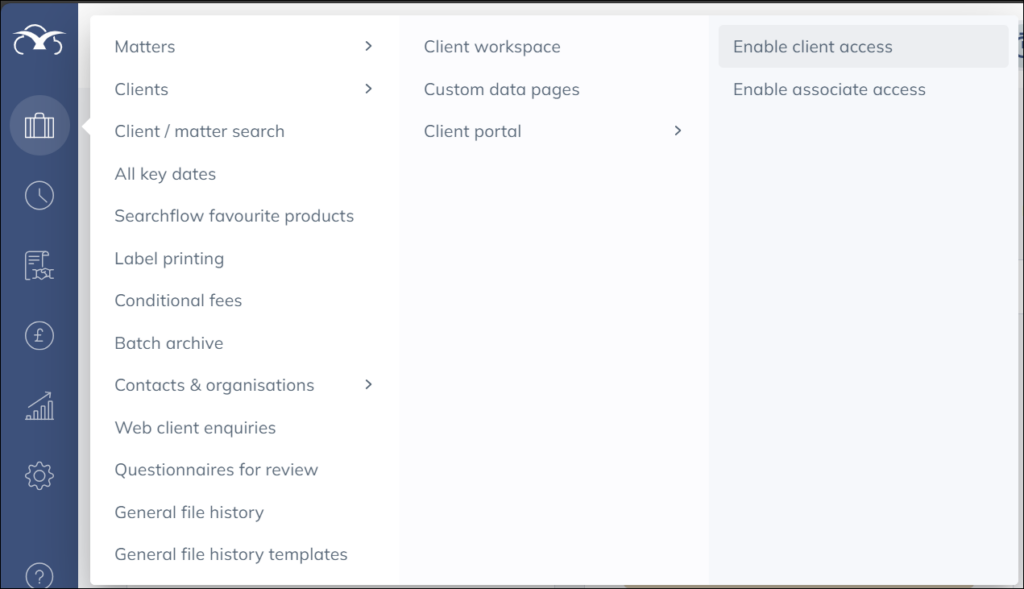 A client must be web enabled in order to grant them access to the Web Portal. Once enabled, you can then decide which matters belonging to a client are visible via the web portal.