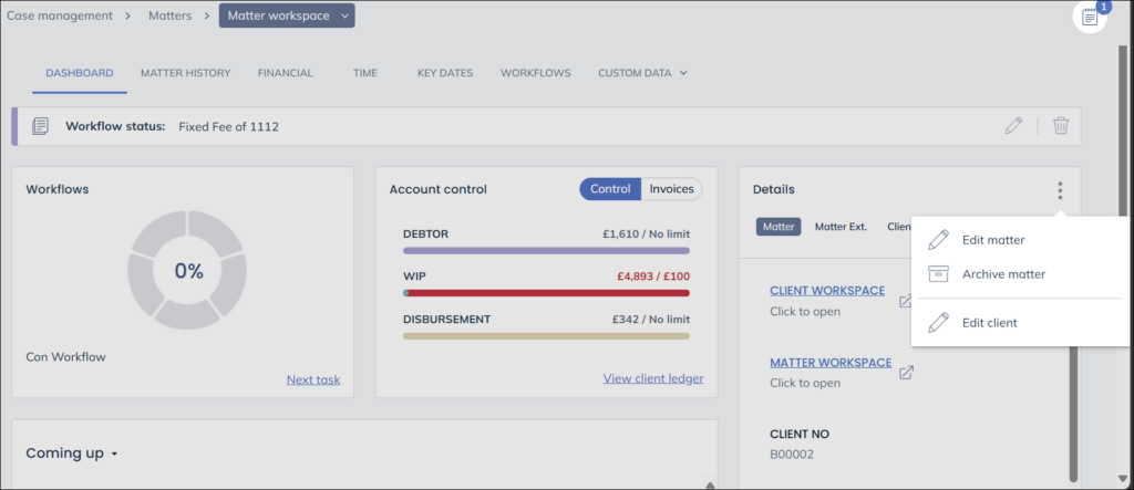 When in the matter history, right click the relevant file and select ‘Edit Details’