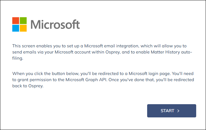 You will see a prompt from Microsoft, please click Start and sign into the Microsoft account you wish to connect to Osprey.