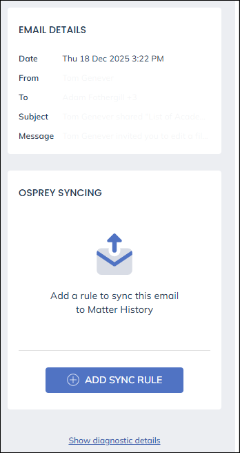 You will now see the details of the selected message, click Add sync rule