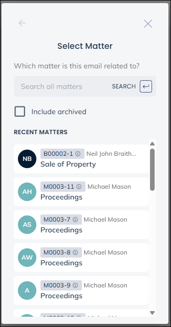 Search for and select the matter to save the message to