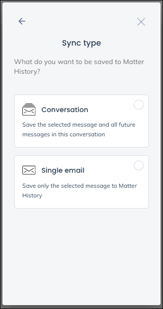 Choose Conversation if you wish any replies to also automatically be saved to Osprey, or Single email to just save the selected message.