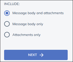 Scroll down to make choice on on what is to be saved, the message and attachments, message only, or attachments only. Click Next