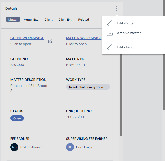 When a prospect file has been converted, a new entry will appear in the file’s matter history to show this.