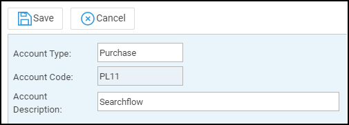 If you have turned on the Purchase Code Auto Numbering switch, your purchase code will be assigned already as shown below. If not, enter a code, and a description for the supplier.