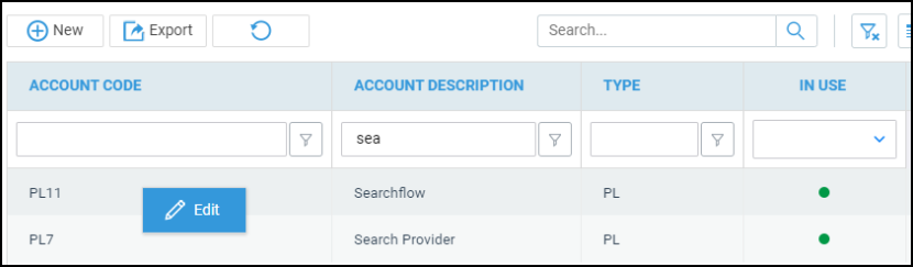 You can then use the filter row to filter your suppliers down if required. Then click the Export button in the top left of the screen.