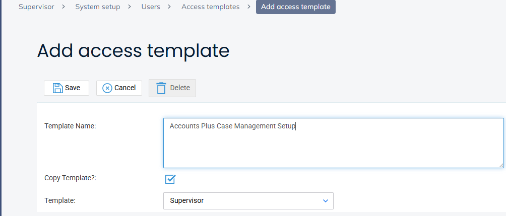 If you have an access template which covers most of the actions you’d like your staff member to be able to complete, but you wish to give them slightly more access than other users, you can copy and amend an existing template. Similarly, you can copy an access template, but remove certain access rights for another user.