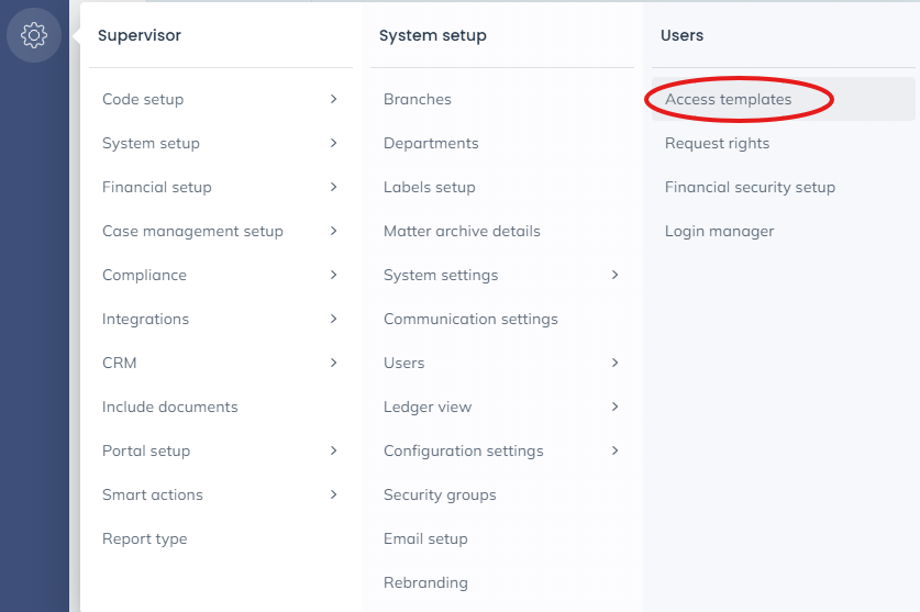 Navigate to Supervisor > System Setup > Users > Access Templates.