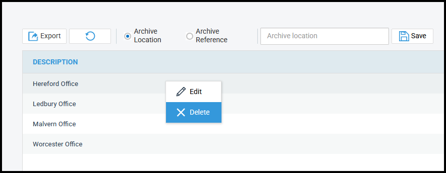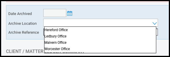 When archiving a matter, users can select an existing Archive Location or Archive Reference, as well as create new ones.
