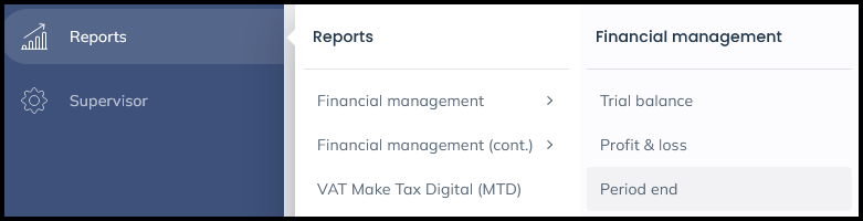 Navigate to Reports > Financial Management > Period End