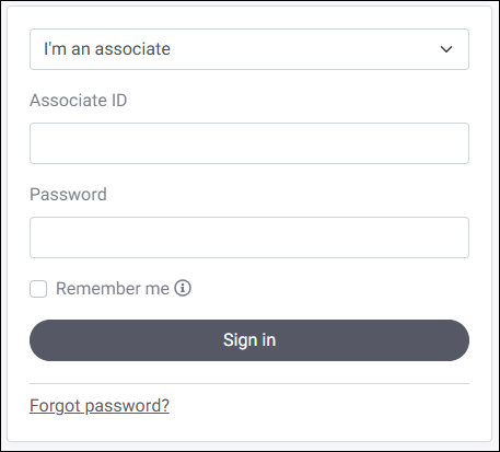 To reset the password, your associate will need to go to the log in page of the web portal and click Forgot password?