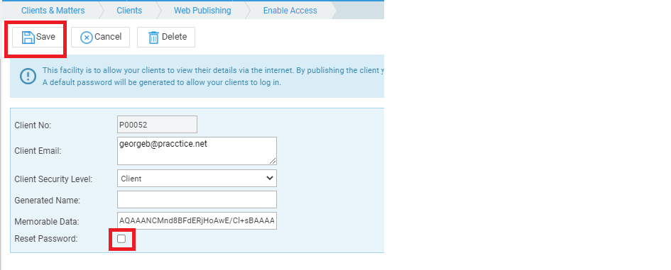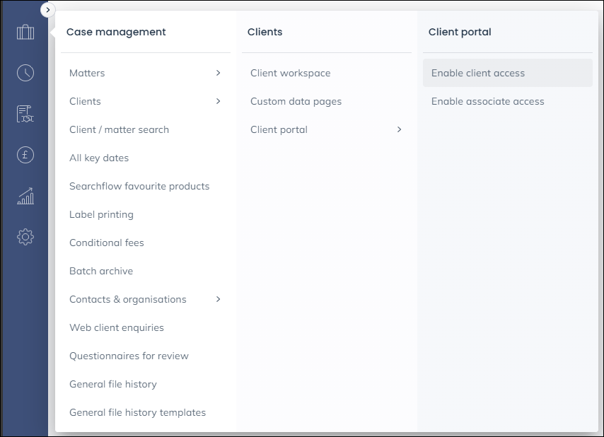 Navigate to Case Management > Clients > Client portal > Enable client access