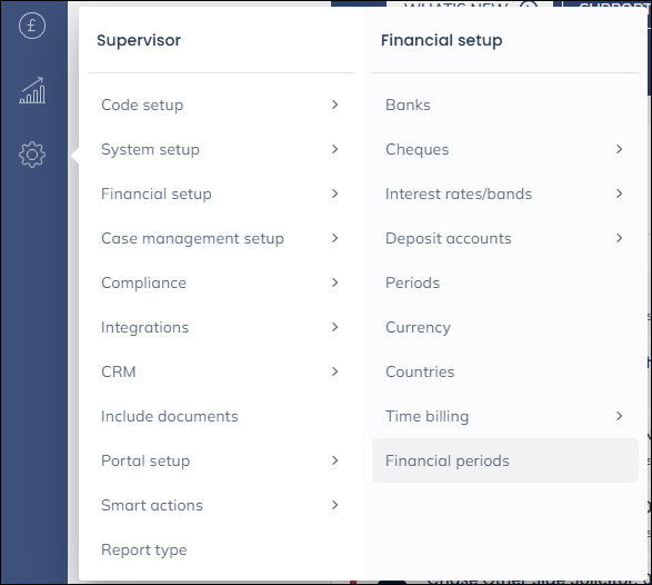 Navigate to the ‘Supervisor’ tab and select ‘Financial setup’ and then ‘Financial periods’.