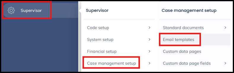 To create or amend an email template, navigate to Supervisor > Case Management Setup > Email Templates.