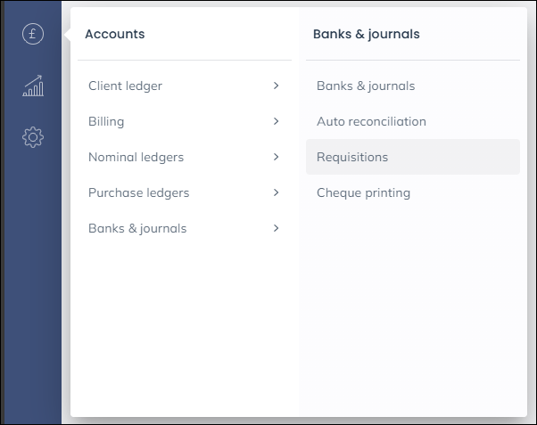 Ensure that you have selected the client you want to raise a request against. Navigate to Accounts > Client Ledgers > Requisitions.