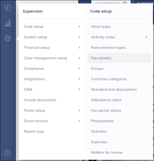 Navigate to Supervisor > Code Setup > Fee Earners.