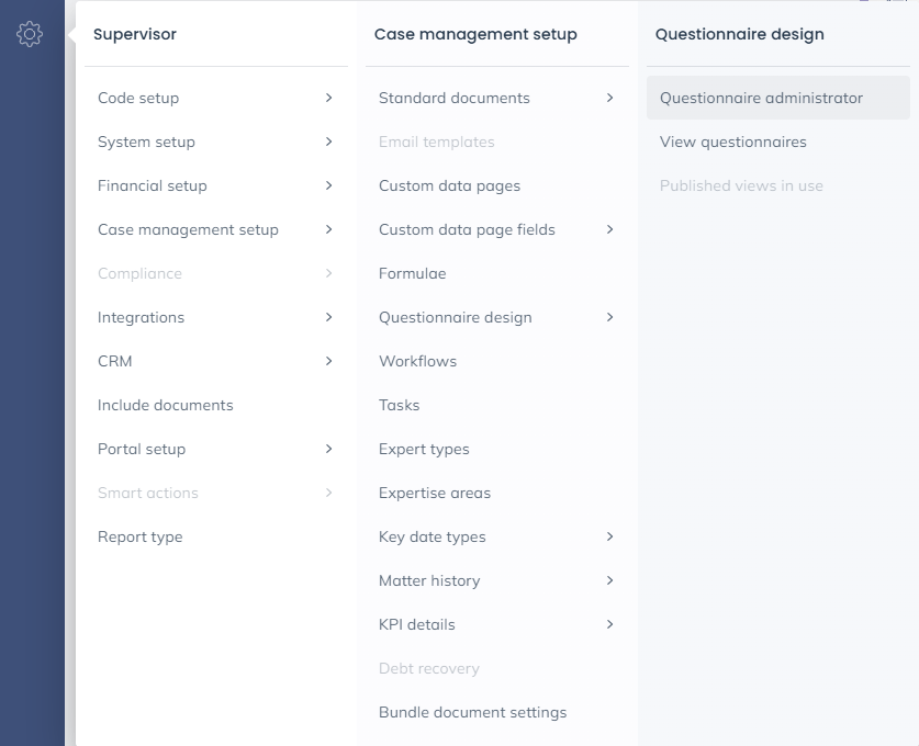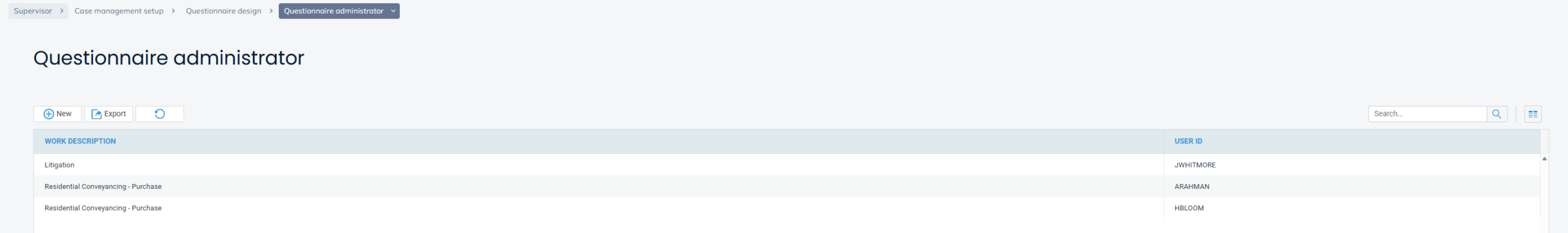 To add a new Questionnaire Administrator, go to Supervisor > Case management setup > Questionnaire design > Questionnaire administrator