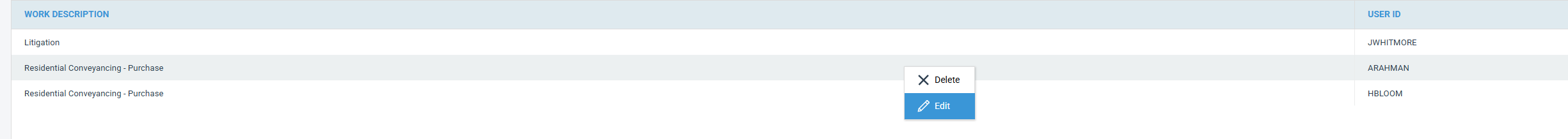 Right click on the relevant entry and click Edit. You can reassign the user to a new worktype, or replace the user with an alternative user.