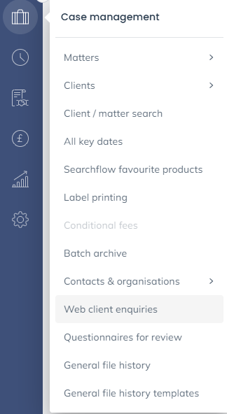 New Client Enquires can be accessed from Case management > Web Client Enquires.